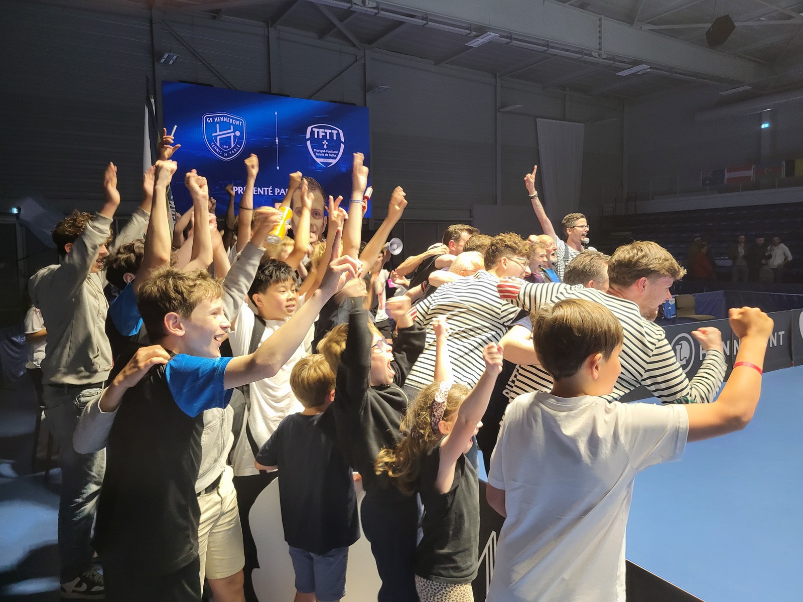 Avec 4 de nos futurs champions, nous avons assisté à la rencontre HENNEBONT THORIGNE-FOUILLARD pour la qualification en Play off. Gros suspens et matchs époustouflants pour en final une qualification d'Hennebont 3 à 2 après avoir sauvé 2 balles de matchs. Merci à Yoan d'avoir organisé cet évènement qui restera un souvenir mémorable pour nos jeunes et leurs accompagnateurs. René